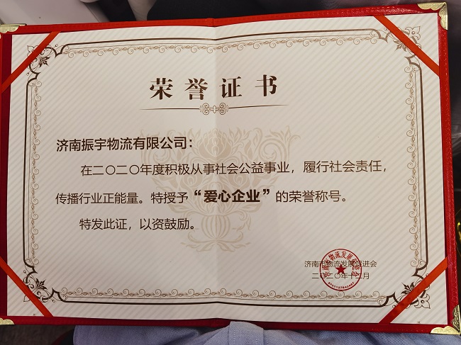 熱烈祝賀振宇物流榮獲“突出貢獻(xiàn)企業(yè)”“愛心企業(yè)”榮譽(yù)稱號(hào)!