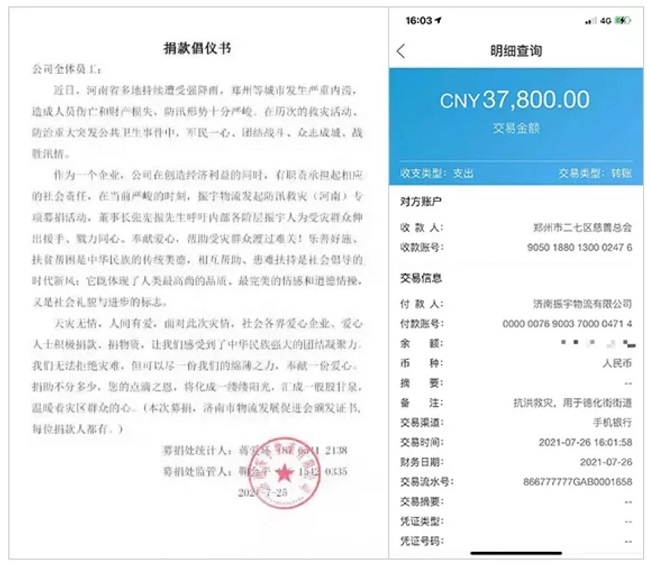 在當(dāng)前嚴(yán)峻的時(shí)刻,振宇物流發(fā)起防汛救災(zāi)(河南)專項(xiàng)募捐活動(dòng),董事長張憲振先生呼吁振宇人為受災(zāi)群眾伸出援手、戮力同心、奉獻(xiàn)愛心,幫助受災(zāi)群眾渡過難關(guān)!大家慷慨解囊、踴躍捐款,7月25日、26日兩天時(shí)間匯集捐款37800元。