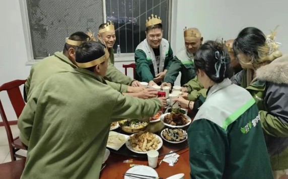 壽星們圍坐,燭光逐一亮起時,有人閉目凝神,有人望向身側(cè)的同事,輕聲許下心愿。從許愿時的真誠,到吹蠟燭時的歡呼,再到飯桌上的暢聊,這場生日會傳遞的不僅是溫暖,更是振宇物流“以人為本”的核心價值觀。它讓員工感受到企業(yè)不只是工作的平臺,更是并肩前行的“家人”,成長不只是個人的奮斗,更有團(tuán)隊(duì)的托舉。