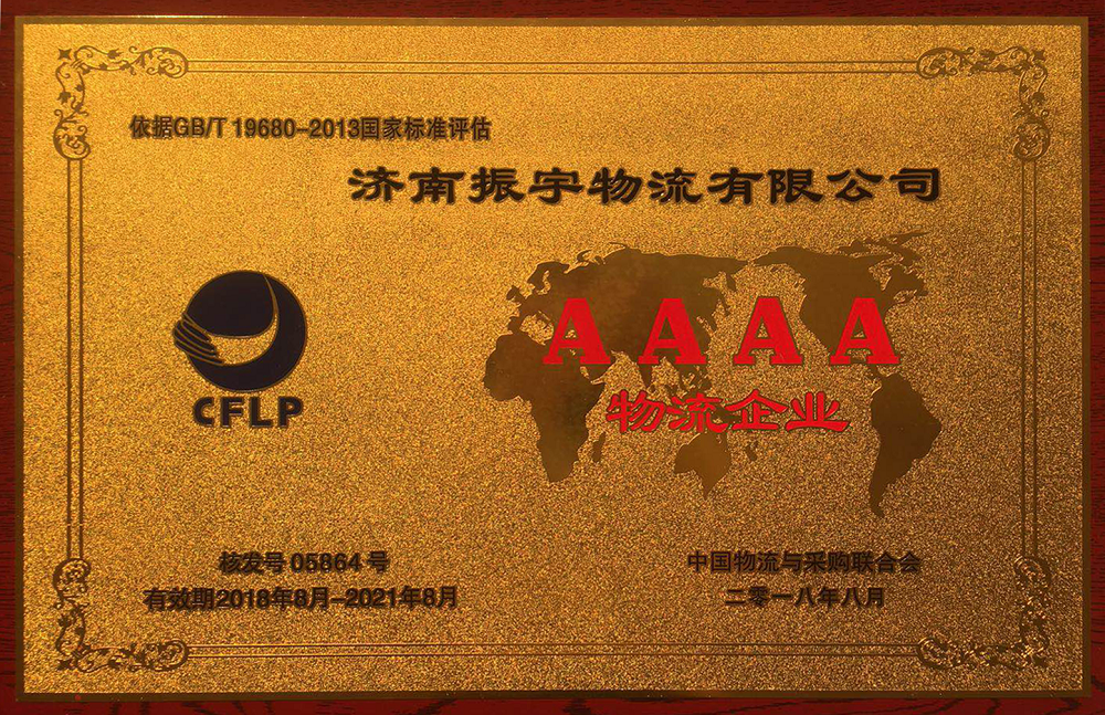 熱烈祝賀濟南振宇物流榮獲國家4A級物流企業(yè)