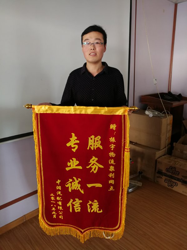 振宇物流泉利網(wǎng)點服務(wù)深得贊許,獲中潤汽配有限公司贈送錦旗!