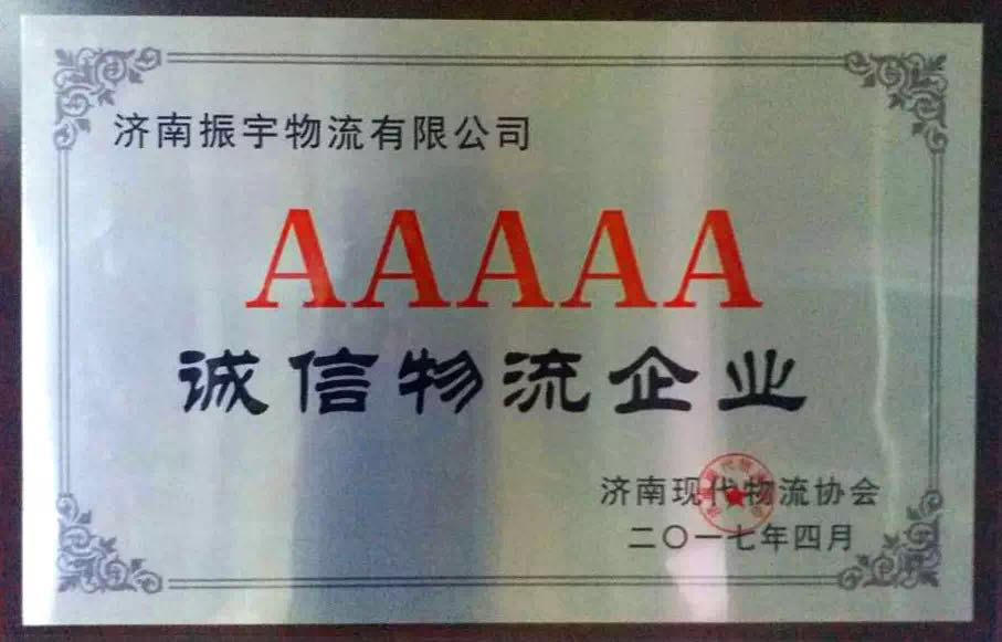 2017年5月10日,濟南現(xiàn)代物流協(xié)會2017年年會暨表彰大會在濟南祥云酒店隆重召開。經(jīng)過嚴格評選,濟南振宇物流榮獲“5A級誠信物流企業(yè)”、“濟南市優(yōu)秀物流企業(yè)”榮譽稱號。