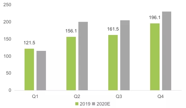 受新型冠狀病毒疫情影響,多地出臺(tái)了交通管制和人員限行的措施,短期對(duì)快遞業(yè)務(wù)發(fā)展有較大影響,主要體現(xiàn)在一季度數(shù)據(jù)。假定疫情在2月底得到有效控制的情況下,預(yù)計(jì)一季度快遞業(yè)務(wù)量120億件左右,總體與上年基本持平。經(jīng)歷3月恢復(fù)調(diào)整后,市場(chǎng)需求將加速釋放,二季度快遞業(yè)迎來速度提升期,增速將明顯加快,預(yù)計(jì)該季度業(yè)務(wù)量規(guī)模為200億件左右,增速將重回30%以上。下半年將恢復(fù)常態(tài)運(yùn)行,預(yù)計(jì)三季度和四季度快遞業(yè)務(wù)量規(guī)模分別為200億件和230億件左右,全年快遞業(yè)務(wù)量規(guī)模將超過750億件。快遞價(jià)格觸底反彈,預(yù)計(jì)全年業(yè)務(wù)收入增速將首次超過業(yè)務(wù)量增速。