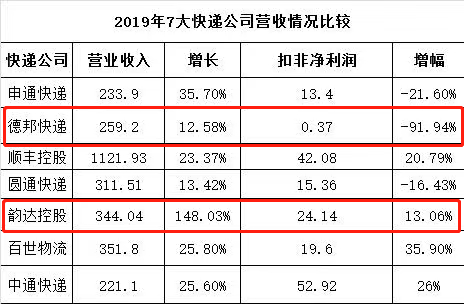 而根據(jù)德邦股份發(fā)布了2019年業(yè)績報(bào)告,2019年實(shí)現(xiàn)營業(yè)收入259.22億元,同比增長12.58%;實(shí)現(xiàn)歸屬上市公司股東凈利潤3.24億元,同比下滑53.82%。扣非凈利潤下降-91.94%。在虧損的邊緣徘徊。
