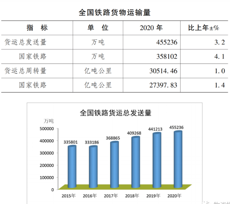 濟(jì)南物流:國家鐵路局發(fā)布《2020年鐵道統(tǒng)計公報》:貨運總量增長3.2%