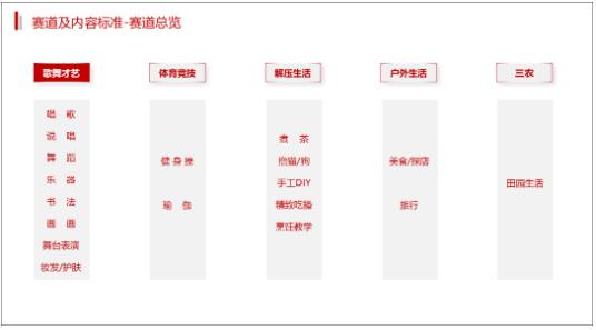 根據(jù)京東推出的主播招募政策,面向歌舞才藝、體育競(jìng)技、解壓生活、戶外生活、三農(nóng)五個(gè)大賽道下的17個(gè)細(xì)分賽道招募內(nèi)容型主播。從政策細(xì)則來(lái)看,京東對(duì)每個(gè)細(xì)分賽道都做了具體的“內(nèi)容標(biāo)準(zhǔn)”要求,包括直播場(chǎng)景、音畫(huà)質(zhì)量、主播狀態(tài)、直播內(nèi)容等等。