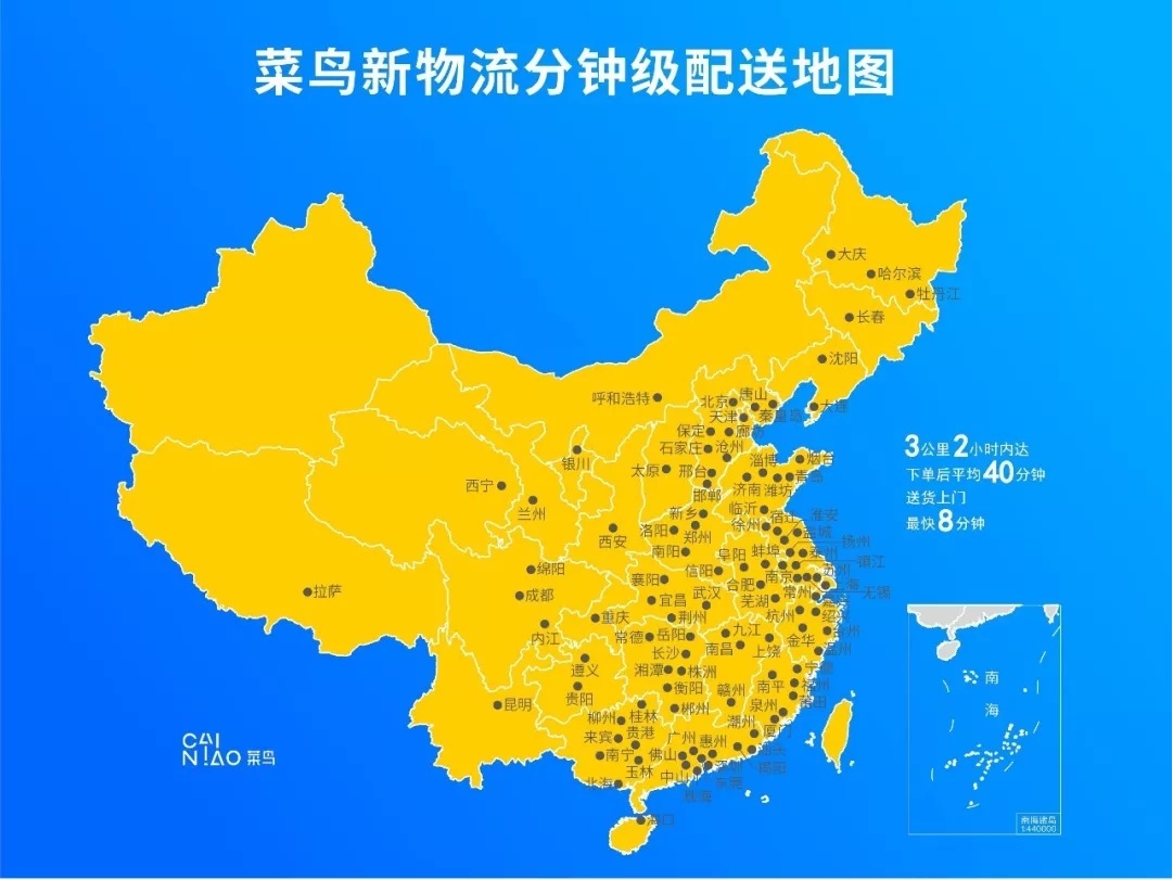今年1月以來,菜鳥與天貓聯(lián)手商家及物流合作伙伴,共同推出門店發(fā)貨分鐘級配送服務,“網(wǎng)上下單、樓下發(fā)貨”,目前平均用時40分鐘,最快僅8分鐘就送貨上門。
