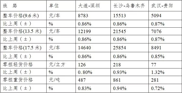 表1 本周部分線路平均價格及環(huán)比情況對比