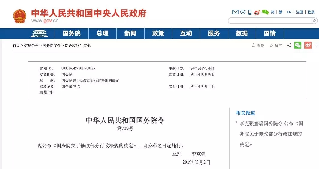 3月18日,國務(wù)院總理李克強簽署國務(wù)院令,公布《國務(wù)院關(guān)于修改部分行政法規(guī)的決定》(以下簡稱《決定》),自公布之日起施行?!稕Q定》顯示,經(jīng)過清理,國務(wù)院此次共對49部行政法規(guī)的部分條款予以修改。其中,與快遞、物流、交通運輸業(yè)息息相關(guān)的《快遞暫行條例》和《中華人民共和國道路運輸條例》等多項條款被修改。